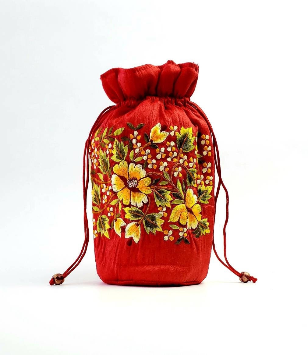 Embroidered drawstring pouch, potli bag, cosmetic bag, jewelry pouch,jewelry travel bag,jewelry bag, dice bag,gift for her,Mother's day gift